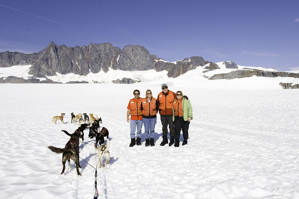 Mushers and dogs taking a break