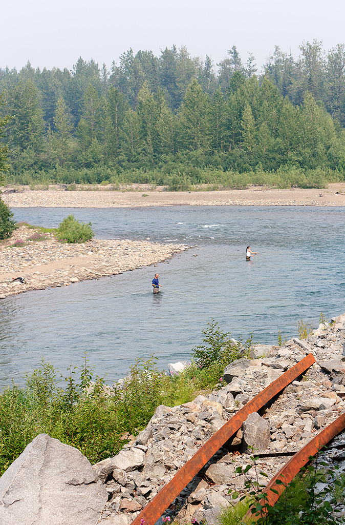 A couple people fishing for dinner in the Susitna somewhere between Anchorage and Denali